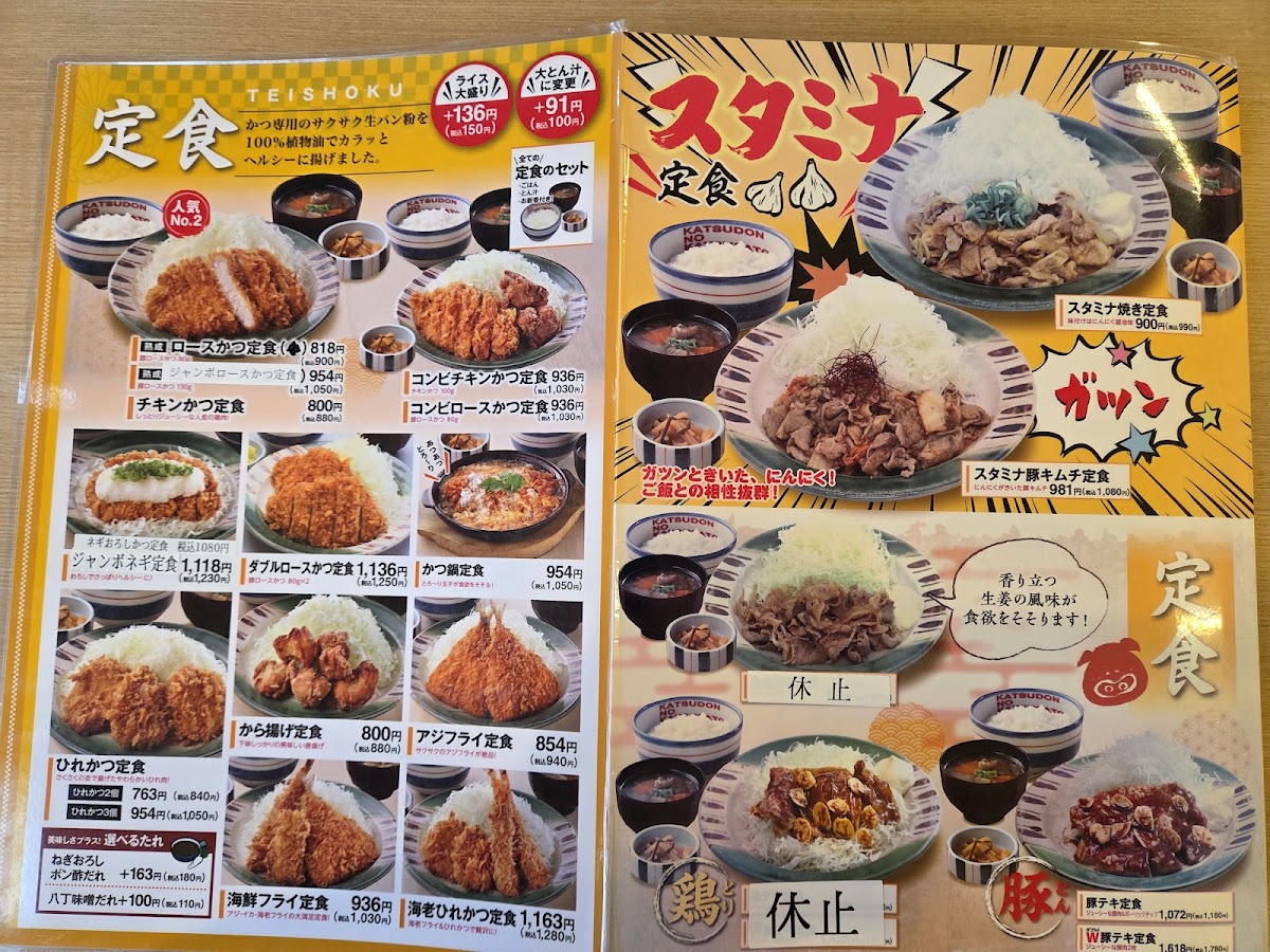 Katsusato Fukuroi offers a delightful range of dishes that highlight the best of Japanese comfort food, each crafted with care and attention to detail. One of the standout meals is the ランチのwチキン定食 (Lunch W Chicken Set), which combines two different chicken dishes, perfect for those seeking variety and rich flavors. Another must-try is the ジャンボかつ丼 (Jumbo Katsu Don), a hearty bowl of crispy pork cutlet served over rice, ideal for those with a big appetite.